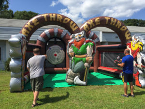 Axe throwing has become hugely popular, and now it’s the hottest new inflatable game.  We are proud to introduce the definitive inflatable axe throw. Larger-than-life artwork, realistic foam axes, and a durable built-in vinyl floor make this the best inflatable axe throw, period.