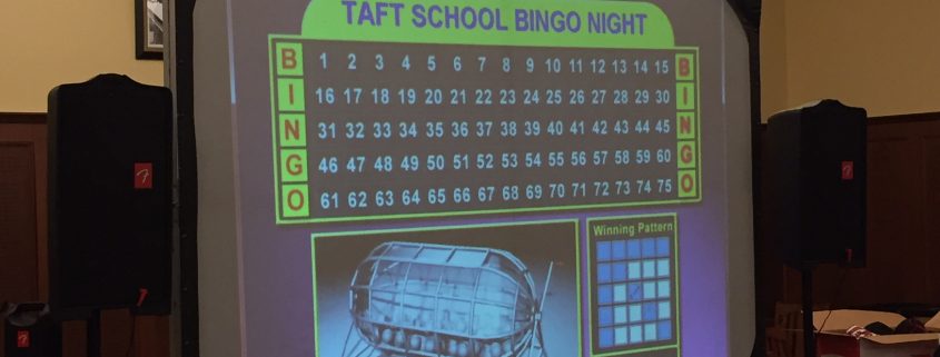 We will arrive at your location with a small, medium, or giant video screen, sound system, caller/host, and all of the supplies to run a complete night of bingo. On our video screen you will see the bingo board and a simulated bingo cage that randomly selects the number. Pre printed bingo cards and markers are included. We can provide prizes at an additional cost.