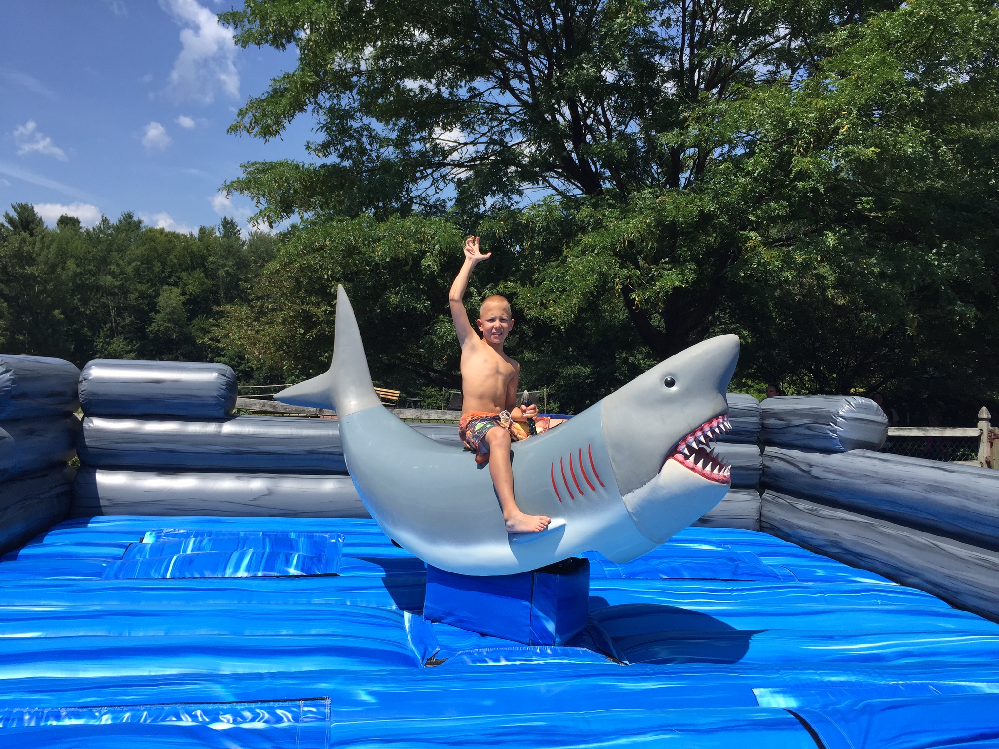 EVENT DESCRIPTION 20’ ROUND 3’ HIGH INFLATABLE ARENA ENCASING AN OPERATOR CONTROLLED MECHANICAL SHARK SPACE REQUIREMENTS 30’ X 30’ X 15’ HIGH UNOBSTRUCTED CEILING CLEARANCE ELECTRICAL REQUIREMENTS TWO 20 AMP 110 VOLT DEDICATED CIRCUITS ORGANIZATION MUST PROVIDE ONE BANQUET TABLE AND ONE CHAIR HEIGHT/WEIGHT RESTRICTIONS MIN 54’” TALL / 40-240 LBS **NOTE: ALL PARTICIPANTS WILL BE REQUIRED TO SIGN A RELEASE PRIOR TO PARTICIPATING, IN THE EVENT THAT A PARTICIPANT IS A MINOR, A PARENT OR LEGAL GUARDIAN WILL BE REQUIRED TO SIGN IN ORDER THAT THE MINOR MAY PARTICIPATE (RELEASE COPIES IN ADVANCE OF SHOW AVAILABLE UPON REQUEST)