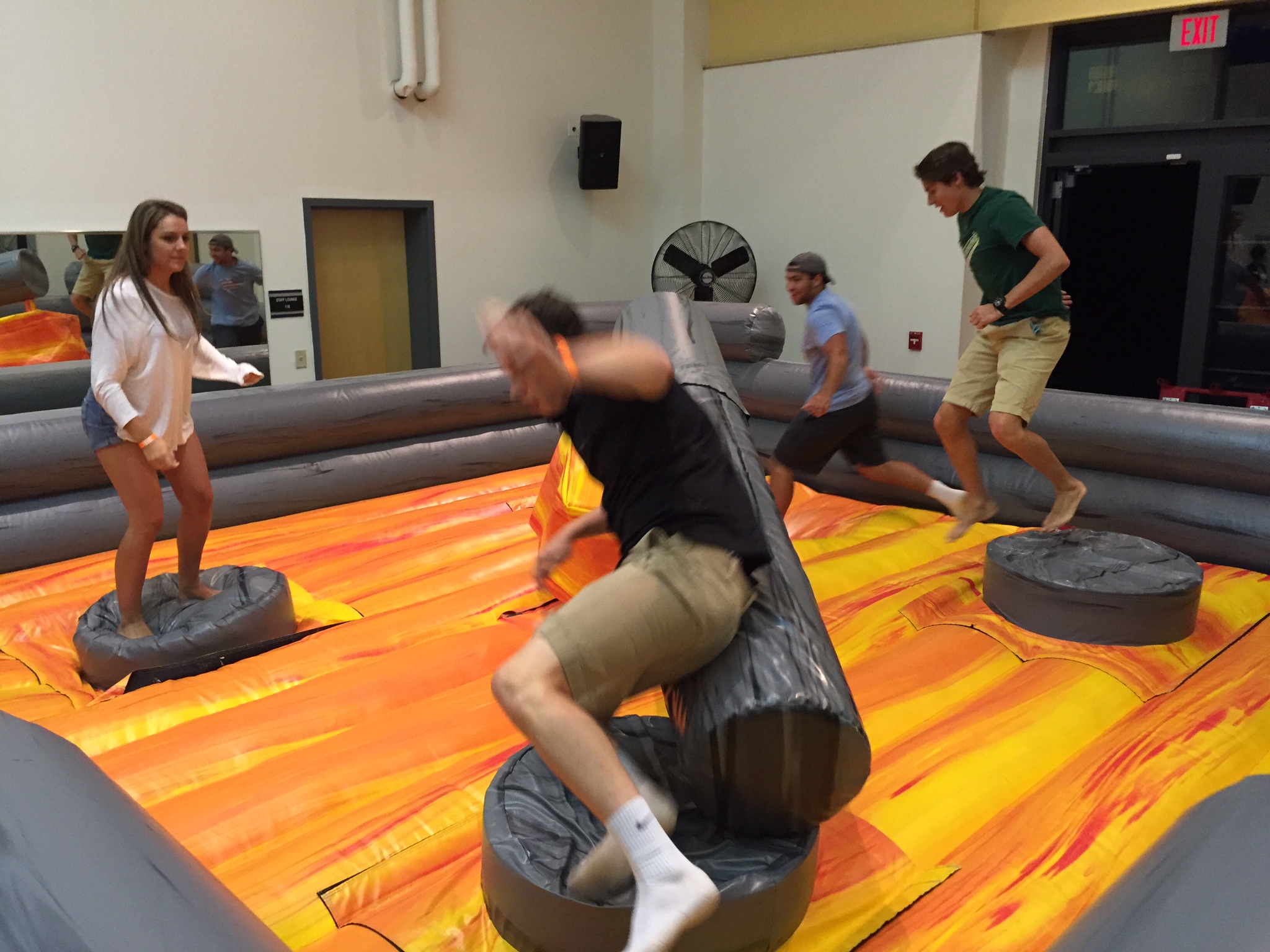 A game designed to challenge your agility, balance and endurance, themed to look like you are in the swamp of the deep south.  There has been an explosion at the local mill, leaving you floating on a tree stump with three other of your buddies. Tree logs are flying through the air knocking you into the alligator infested swamp. Do you jump or do you duck the log? Either way just make sure that you don’t get snapped up by the hungry alligators waiting for you.  Avoid the log and wrestle the alligators to become the champion of Redneck Games!