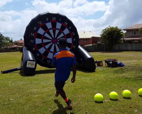 TO KICK SOCCER BALL AT A DART BOARD