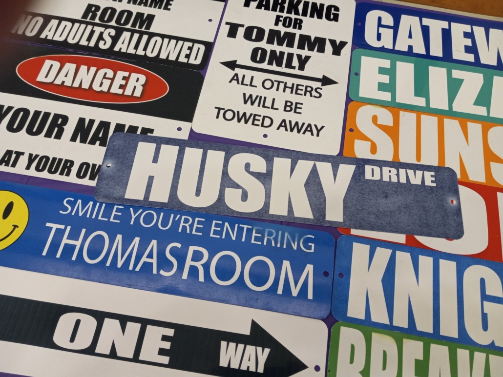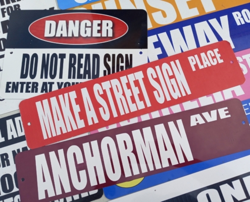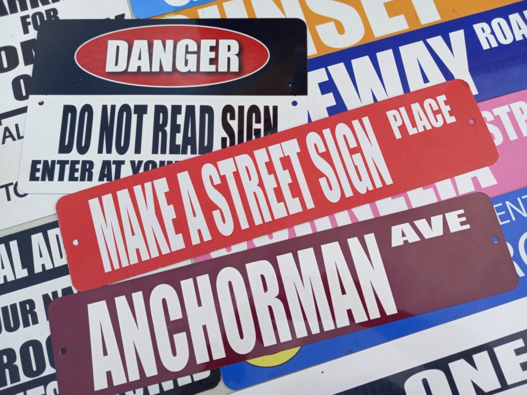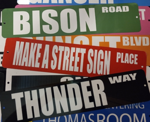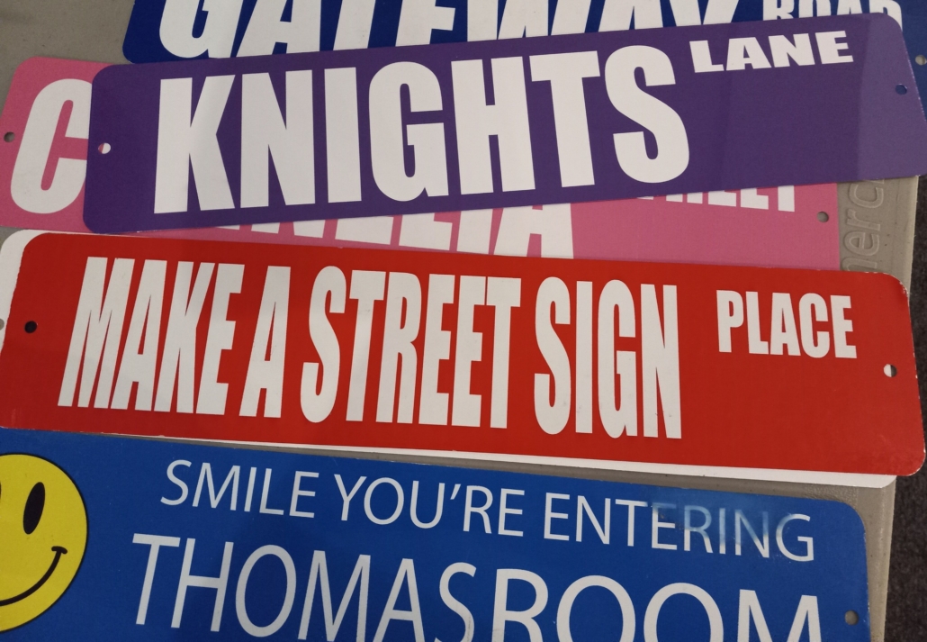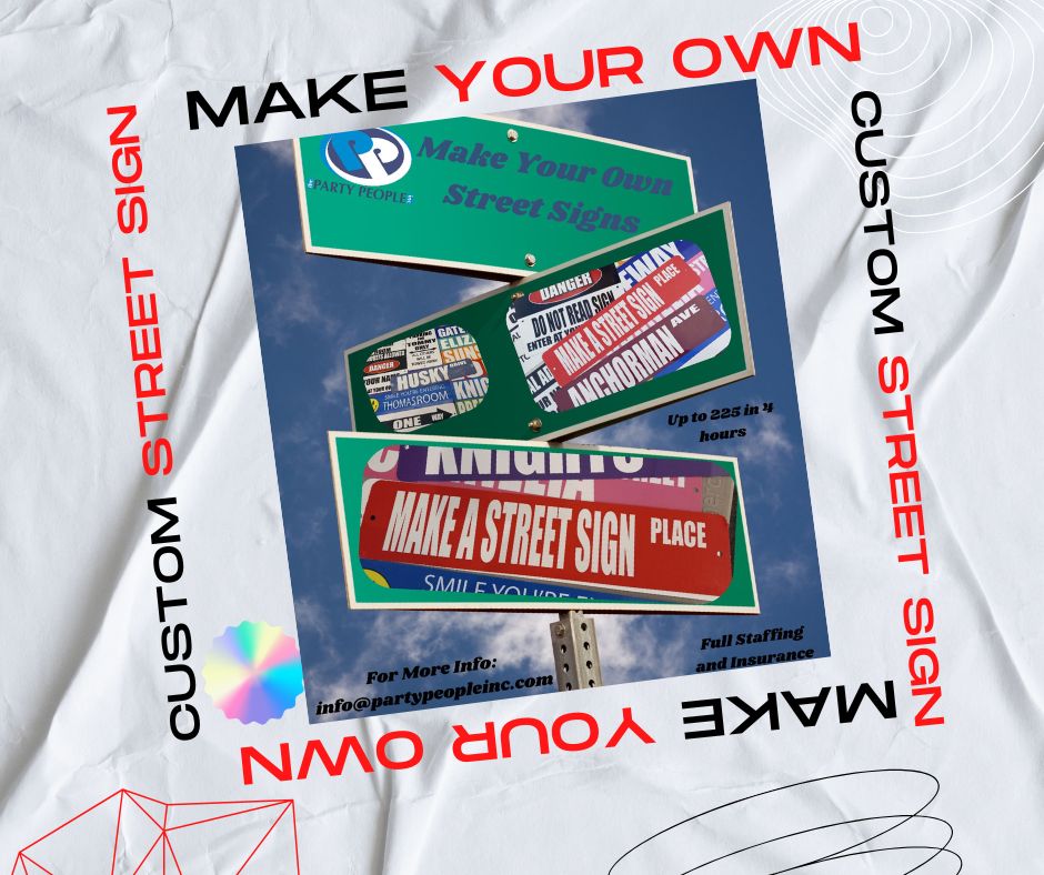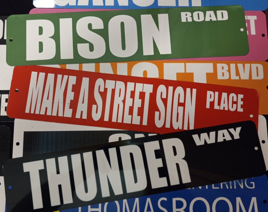 The Street Sign shop from the Party People lets you customize a variety of signs. The Street Signs program let’s participants choose from different signs and input their own words. With over a dozen different sign layouts, you’ll be sure to find one that is perfect for you with our Street Sign event.
